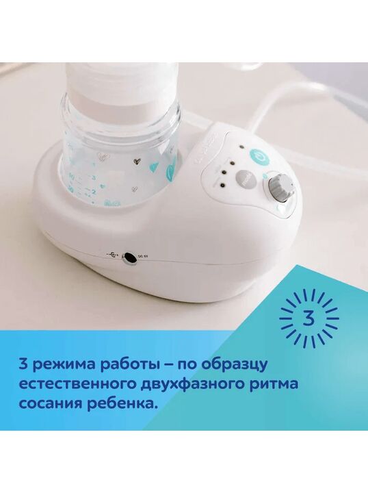 - 3-х ступенчатая регуляция ритма сосания смоделирована на двухфазном ритме сосания, позволяет быстро стимулировать отток пищи с последующим медленным, глубоким сосанием молока.