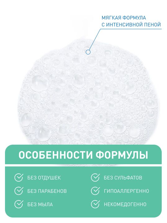 Гипоаллергенная формула без мыла, отдушек и сульфатов деликатно воздействует на кожу, не вызывая ощущения сухости.