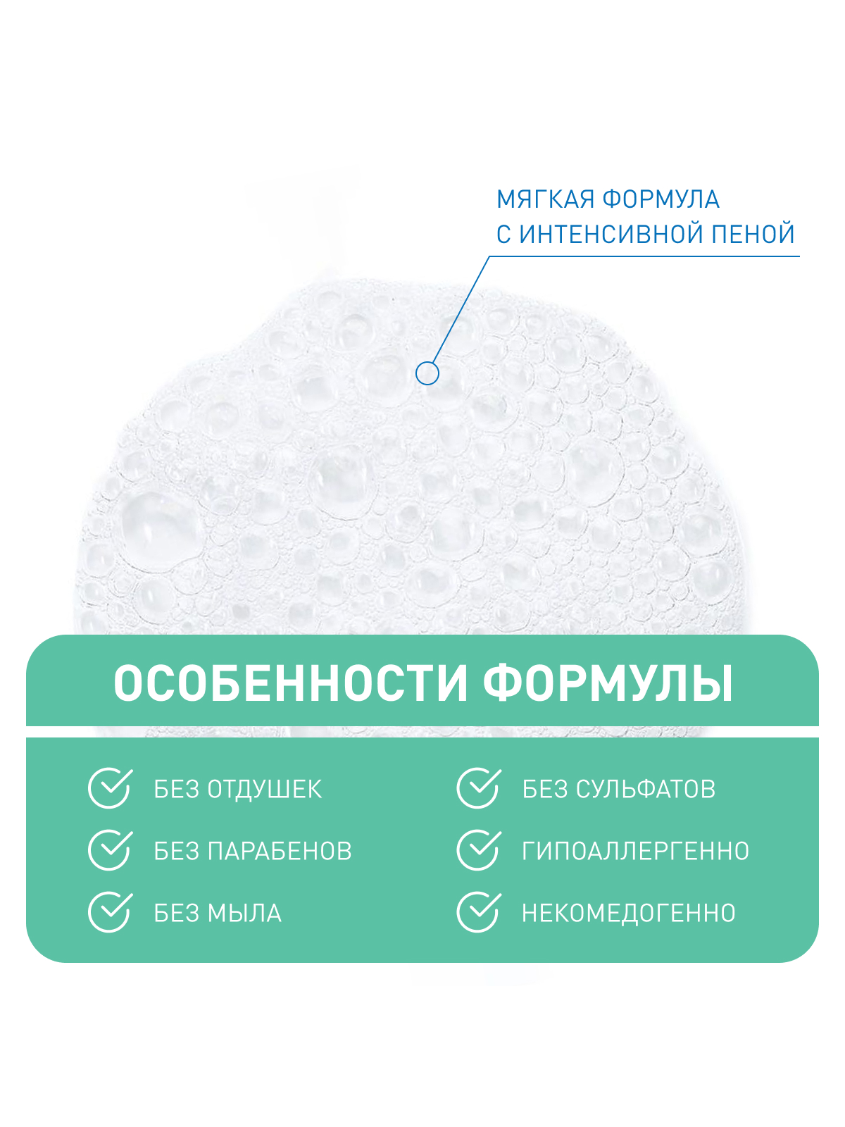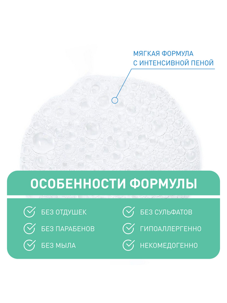 Гипоаллергенная формула без мыла, отдушек и сульфатов деликатно воздействует на кожу, не вызывая ощущения сухости.