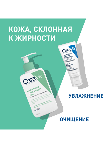 БрендCeraVe ГаммаHydrating Cleanser НазначениеОчищение Область примененияЛицо Состояние кожиНормальная, Жирная Тип продуктаГель ПотребностьОчищение