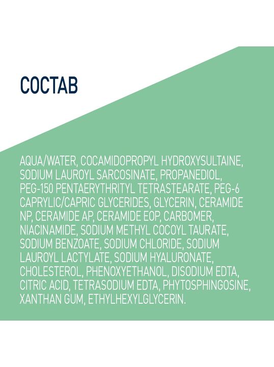 AQUA/WATER, COCAMIDOPROPYL HYDROXYSULTAINE, SODIUM LAUROYL SARCOSINATE, PROPANEDIOL, PEG-150 PENTAERYTHRITYL TETRASTEARATE, PEG-6 CAPRYLIC/ CAPRIC GLYCERIDES, GLYCERIN, CERAMIDE NP, CERAMIDE AP, CERAMIDE EOP, CARBOMER, NIACINAMIDE, SODIUM METHYL COCOYL TAURATE, SODIUM BENZOATE, SODIUM CHLORIDE, SODIUM LAUROYL LACTYLATE, SODIUM HYALURONATE, CHOLESTEROL, PHENOXYETHANOL, DISODIUM EDTA, CITRIC ACID, TETRASODIUM EDTA, PHYTOSPHINGOSINE, XANTHAN GUM, ETHYLHEXYLGLYCERIN