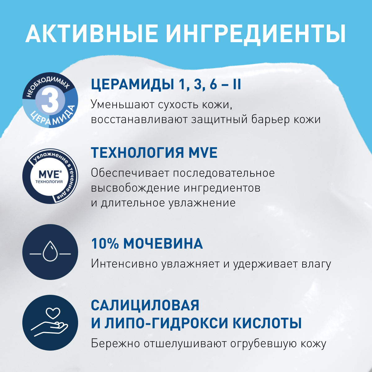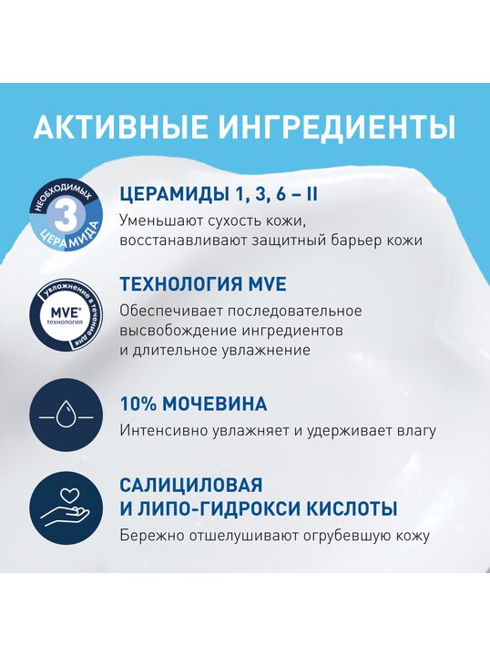 Разработанная с дерматологами формула смягчающего крема, обогащенная 3 необходимыми церамидами, мочевиной, LHA (липогидроксикислотой) и салициловой кислотой, интенсивно увлажняет и обновляет кожу.