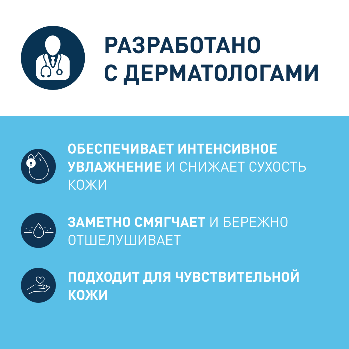 Формула крема бережно отшелушивает сухую, огрубевшую и неровную кожу. Способствует восстановлению защитного барьера кожи.