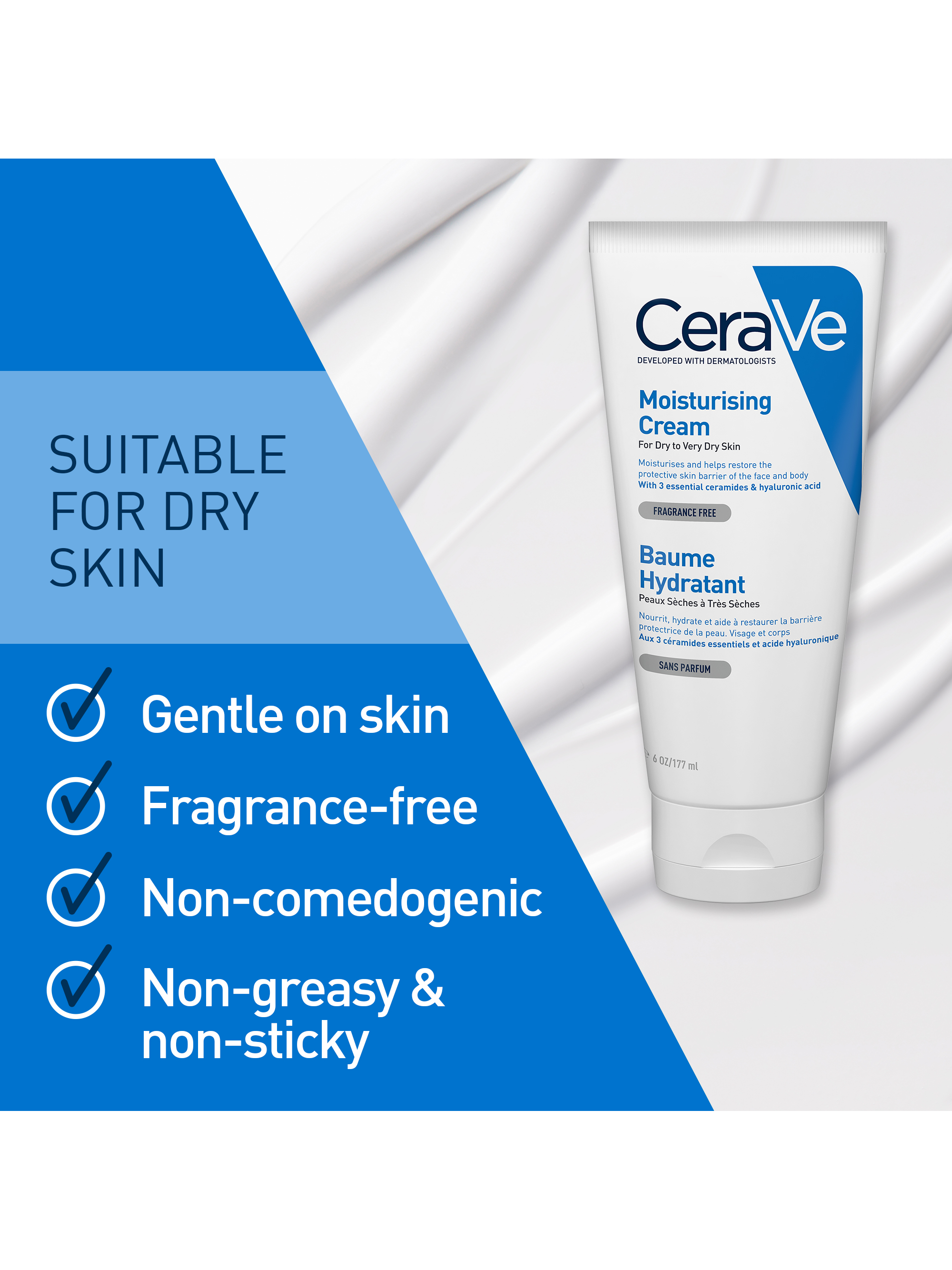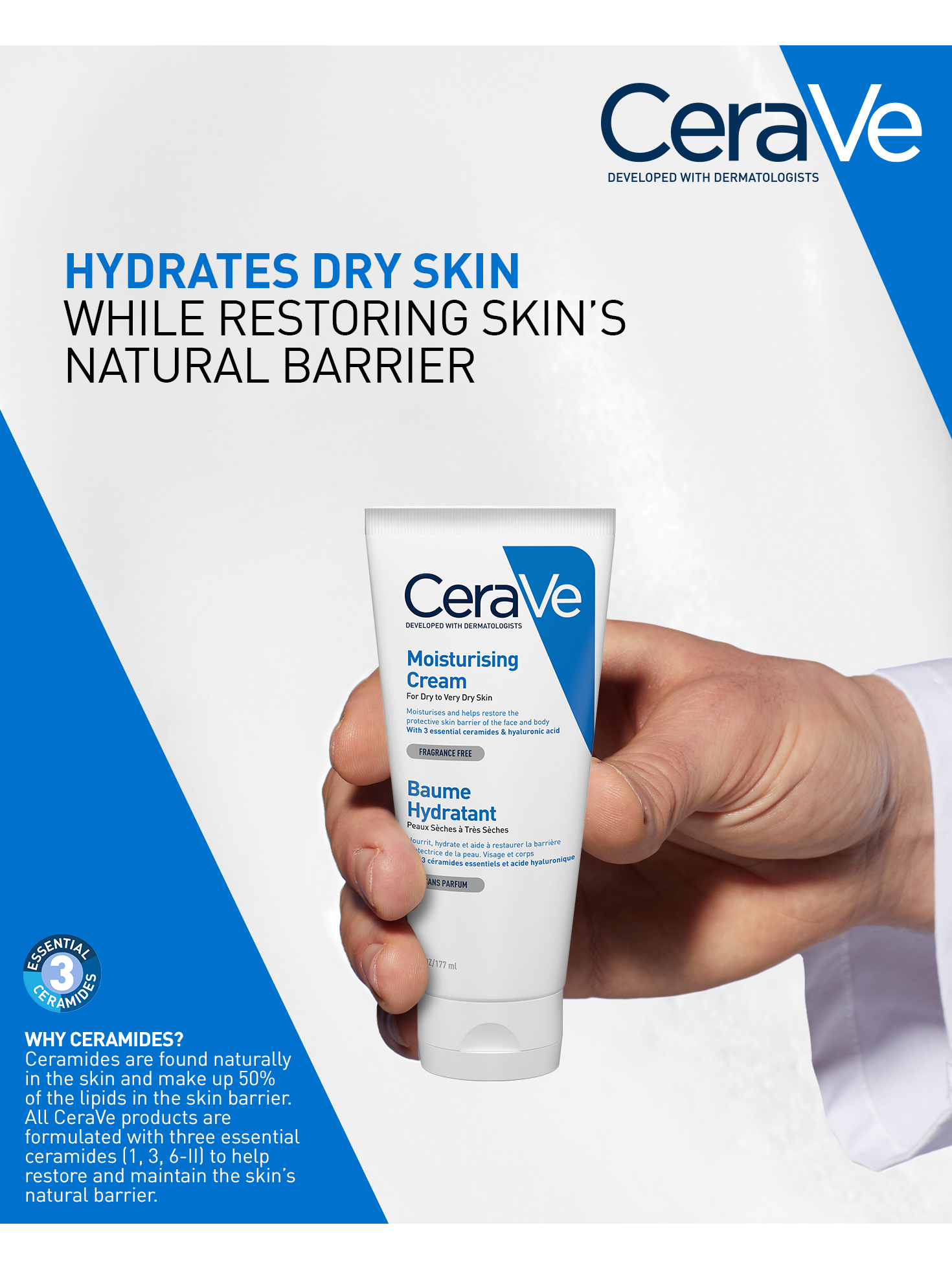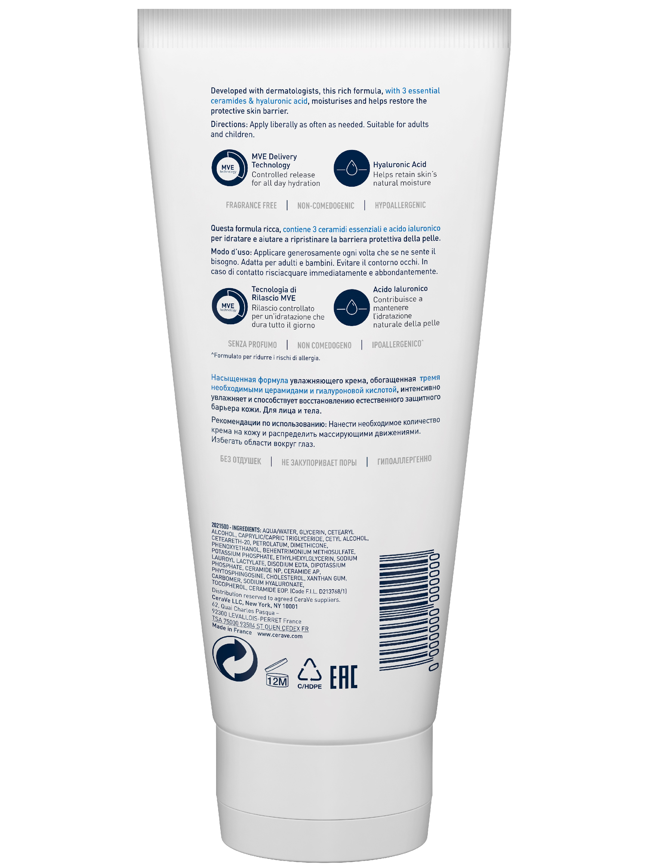 AQUA / WATER, GLYCERIN, CETEARYL ALCOHOL, CAPRYLIC/CAPRIC TRIGLYCERIDE, CETYL ALCOHOL, CETEARETH-20, PETROLATUM, POTASSIUM PHOSPHATE, CERAMIDE NP, CERAMIDE AP, CERAMIDE EOP, CARBOMER, DIMETHICONE, BEHENTRIMONIUM METHOSULFATE, SODIUM LAUROYL LACTYLATE, SODIUM HYALURONATE, CHOLESTEROL, PHENOXYETHANOL, DISODIUM EDTA, DIPOTASSIUM PHOSPHATE, TOCOPHEROL, PHYTOSPHINGOSINE, XANTHAN GUM, ETHYLHEXYLGLYCERIN