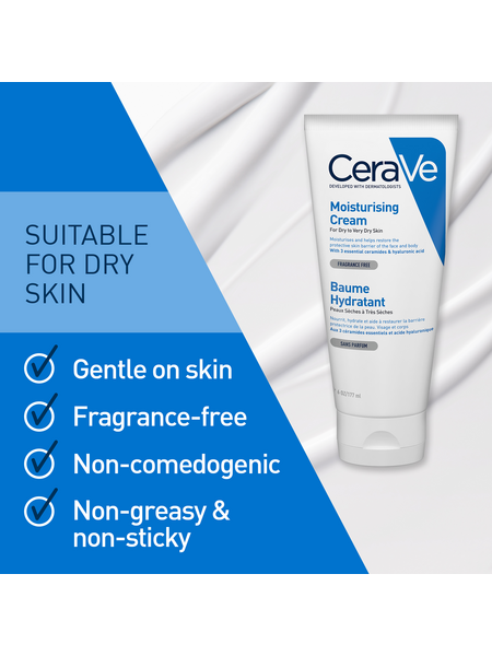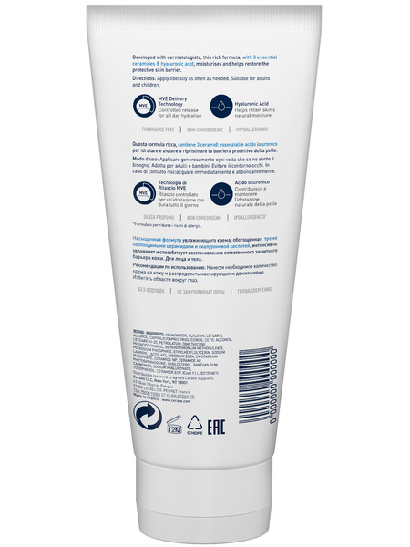 CeraVe® Увлажняющий крем – эта насыщенная, но легкая и нежирная формула, обеспечивает длительное увлажнение в течение всего дня, восстановление и укрепление защитного кожного барьера.
