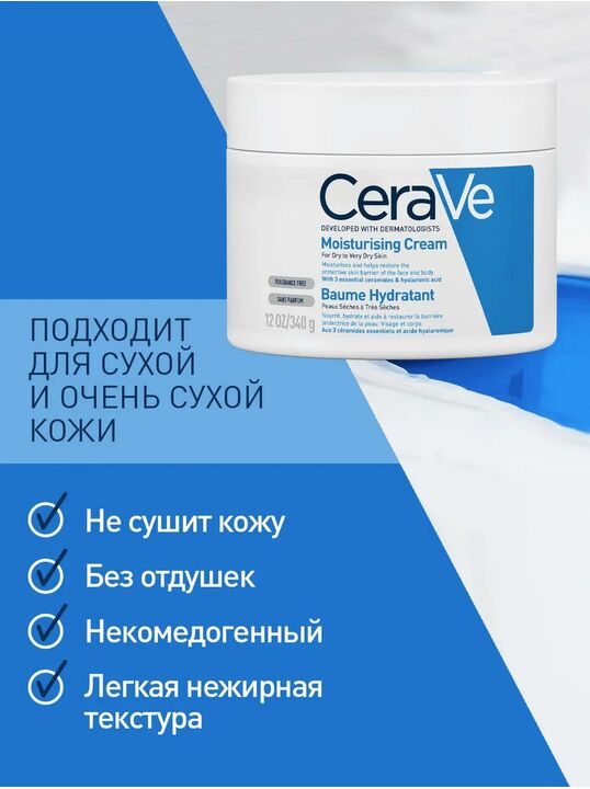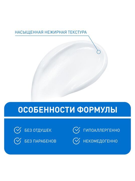 CeraVe® Увлажняющий крем – эта насыщенная, но легкая и нежирная формула, обеспечивает длительное увлажнение в течение всего дня, восстановление и укрепление защитного кожного барьера.
