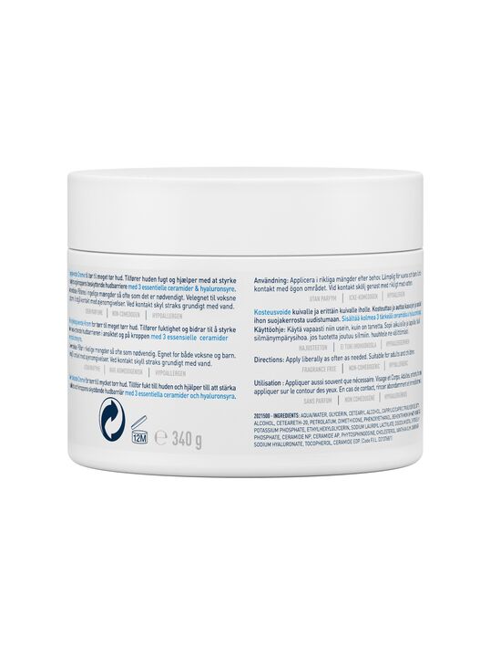AQUA / WATER, GLYCERIN, CETEARYL ALCOHOL, CAPRYLIC/CAPRIC TRIGLYCERIDE, CETYL ALCOHOL, CETEARETH-20, PETROLATUM, POTASSIUM PHOSPHATE, CERAMIDE NP, CERAMIDE AP, CERAMIDE EOP, CARBOMER, DIMETHICONE, BEHENTRIMONIUM METHOSULFATE, SODIUM LAUROYL LACTYLATE, SODIUM HYALURONATE, CHOLESTEROL, PHENOXYETHANOL, DISODIUM EDTA, DIPOTASSIUM PHOSPHATE, TOCOPHEROL, PHYTOSPHINGOSINE, XANTHAN GUM, ETHYLHEXYLGLYCERIN