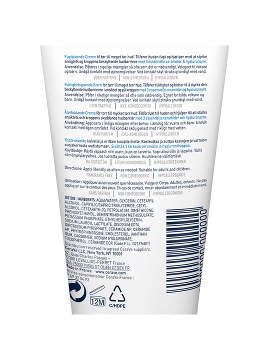 AQUA/WATER, GLYCERIN, CETEARYL ALCOHOL, CAPRYLIC/CAPRIC TRIGLYCERIDE, CETYL ALCOHOL, CETEARETH-20, PETROLATUM, POTASSIUM PHOSPHATE, CERAMIDE NP, CERAMIDE AP, CERAMIDE EOP, CARBOMER, DIMETHICONE, BEHENTRIMONIUM METHOSULFATE, SODIUM LAUROYL LACTYLATE, SODIUM HYALURONATE, CHOLESTEROL, PHENOXYETHANOL, DISODIUM EDTA, DIPOTASSIUM PHOSPHATE, TOCOPHEROL, PHYTOSPHINGOSINE, XANTHAN GUM, ETHYLHEXYLGLYCERIN