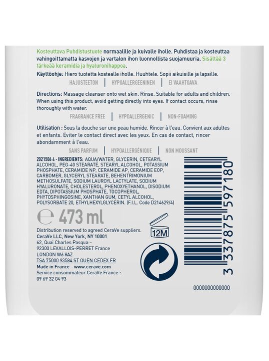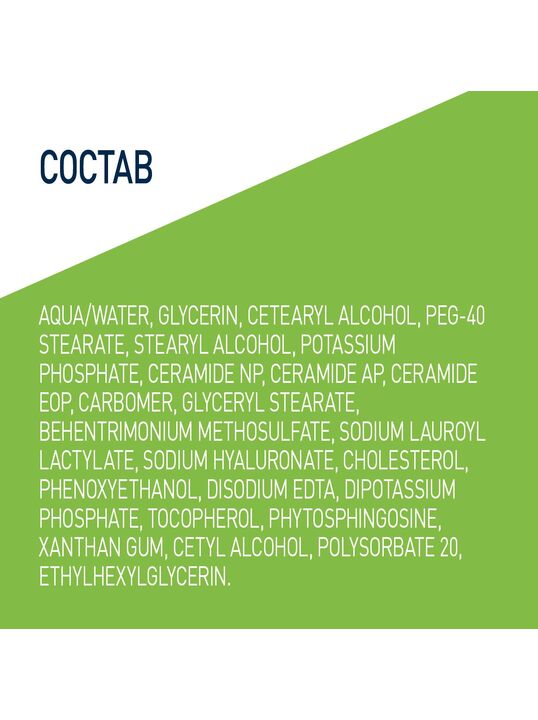 AQUA / WATER, GLYCERIN, CETEARYL ALCOHOL, PHENOXYETHANOL, STEARYL ALCOHOL, CETYL ALCOHOL, PEG-40 STEARATE, BEHENTRIMONIUM METHOSULFATE, GLYCERYL STEARATE, POLYSORBATE 20, ETHYLHEXYLGLYCERIN, POTASSIUM PHOSPHATE, DISODIUM EDTA, DIPOTASSIUM PHOSPHATE, SODIUM LAUROYL LACTYLATE, CERAMIDE NP, CERAMIDE AP, PHYTOSPHINGOSINE, CHOLESTEROL, SODIUM HYALURONATE, XANTHAN GUM, CARBOMER, TOCOPHEROL, CERAMIDE EOP