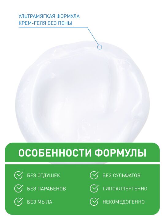 Не образующий пену крем-гель нежно удаляет грязь, кожное сало и подходит для удаления макияжа.
