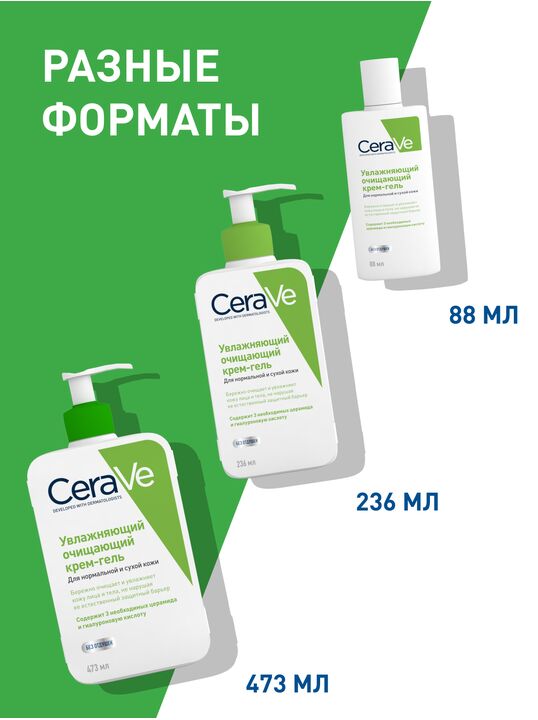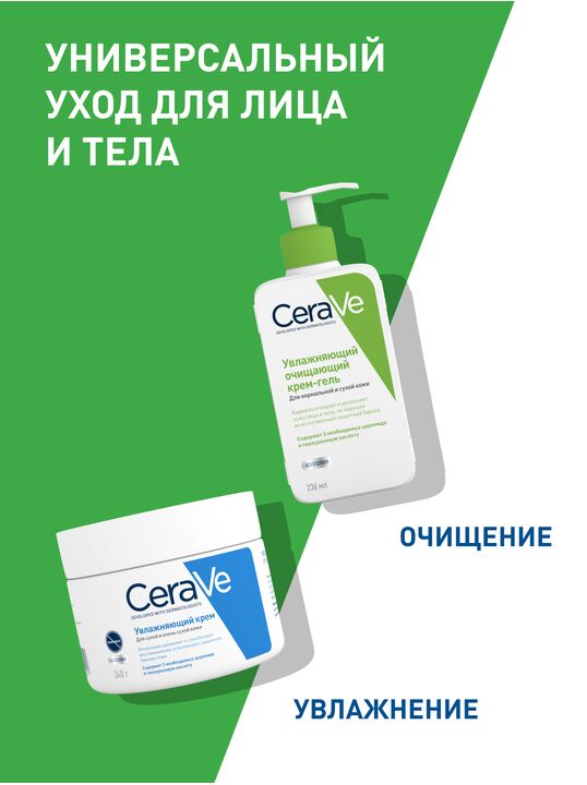 CeraVe® Увлажняющий очищающий крем-гель эффективно очищает и увлажняет кожу, способствуя восстановлению ее защитного барьера.