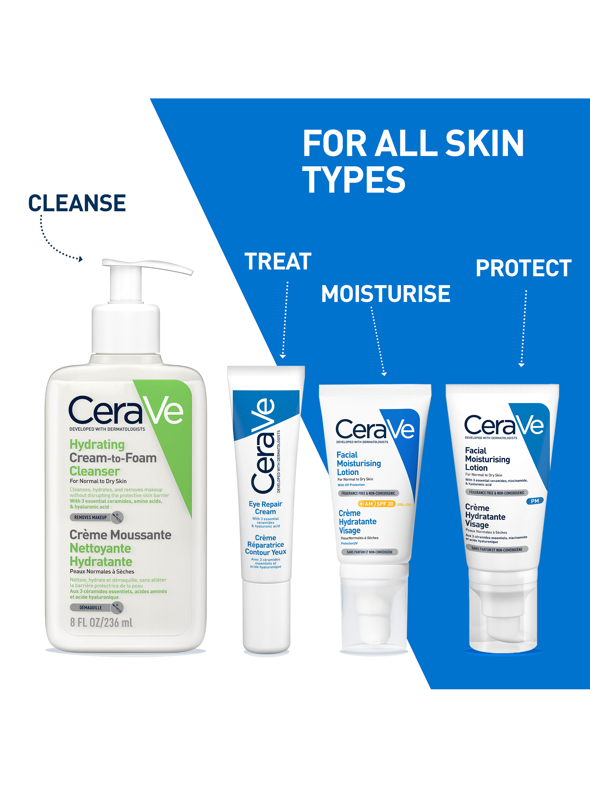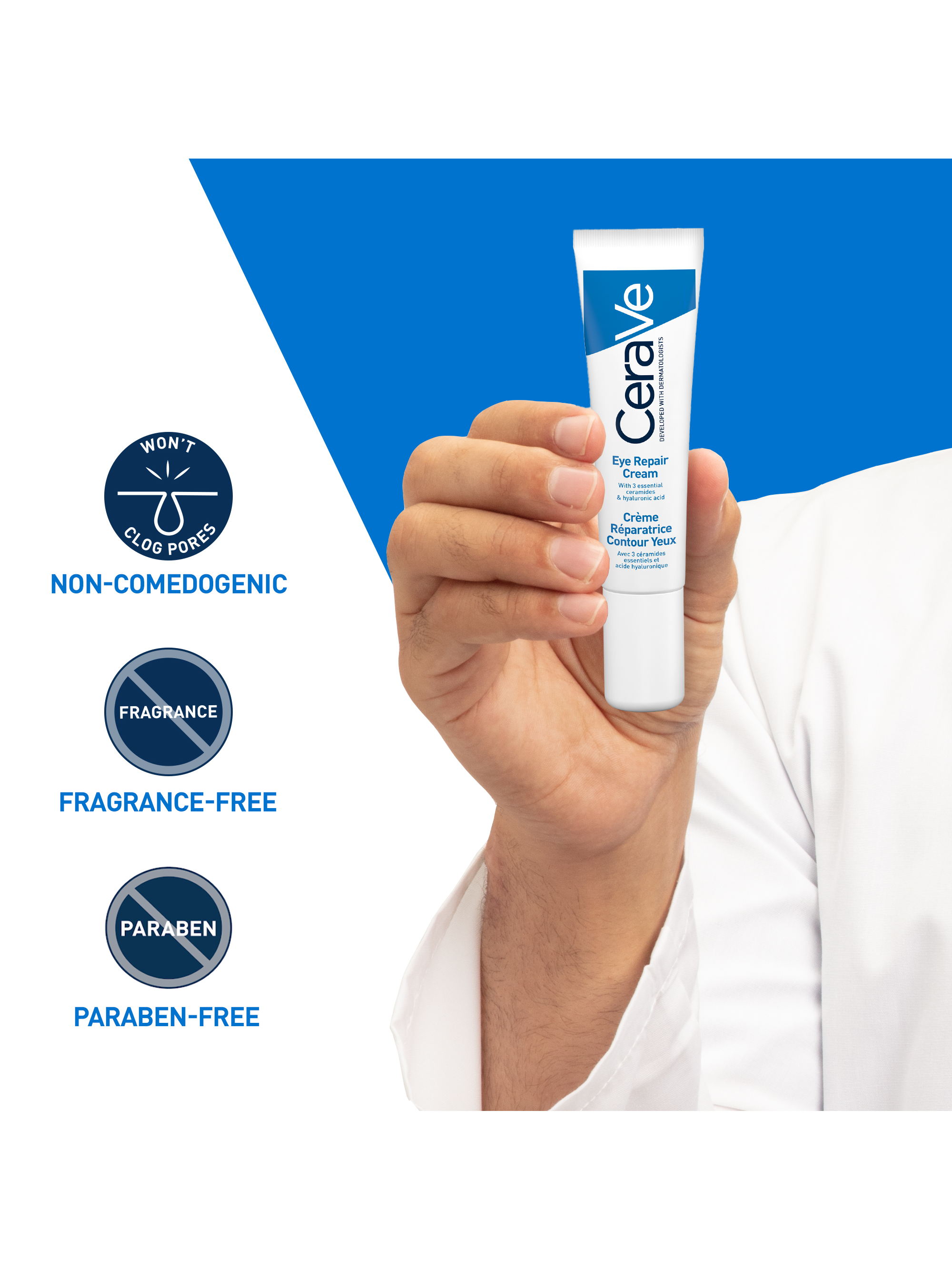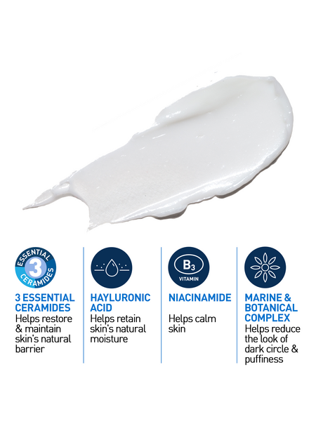 CeraVe® Восстанавливающий крем для области вокруг глаз с ультра-легкой формулой деликатно увлажняет область вокруг глаз, снижая видимость отечности и темных кругов. Уникальная формула с тремя необходимыми церамидами способствует восстановлению и укреплению защитного кожного барьера.