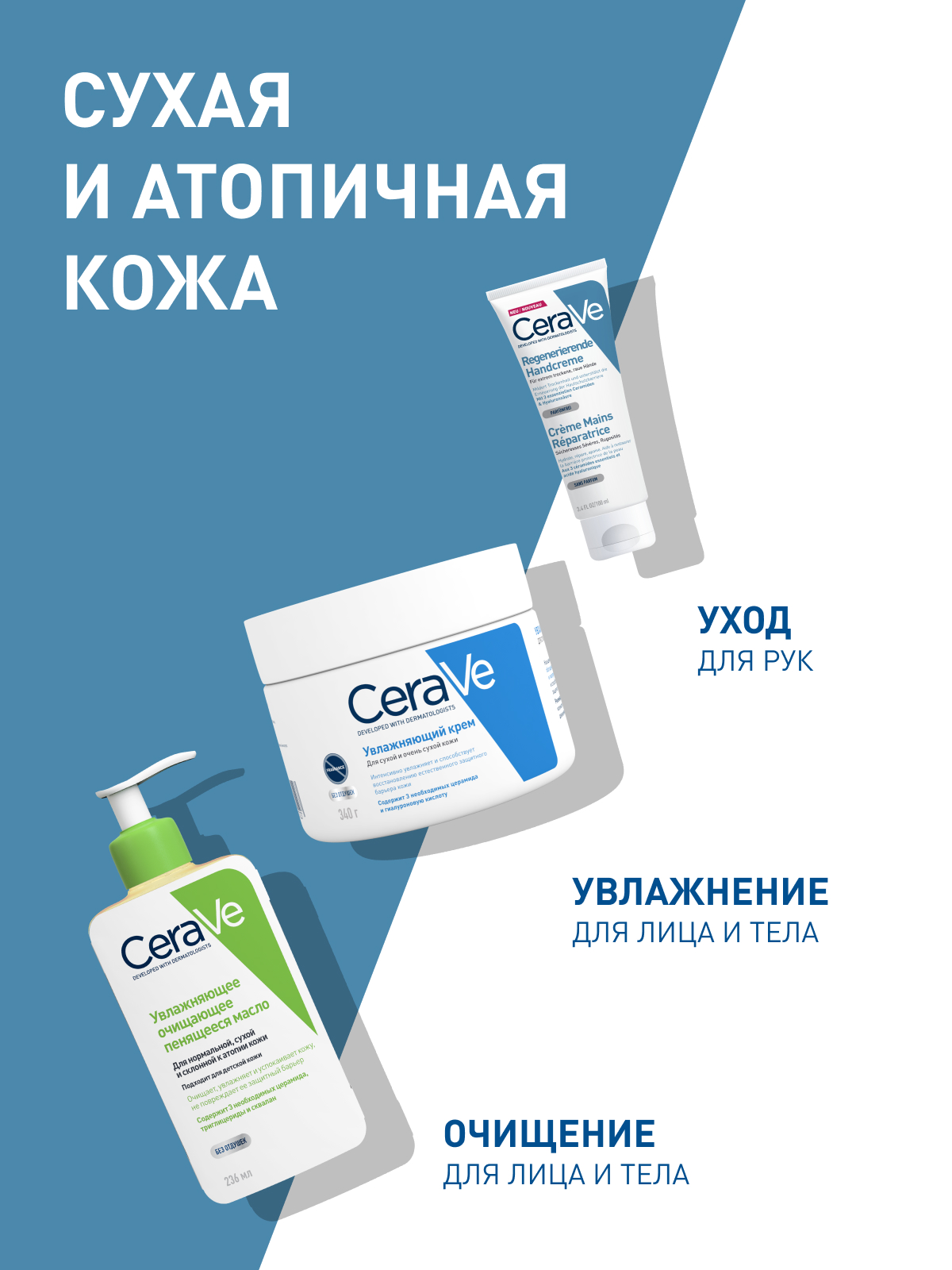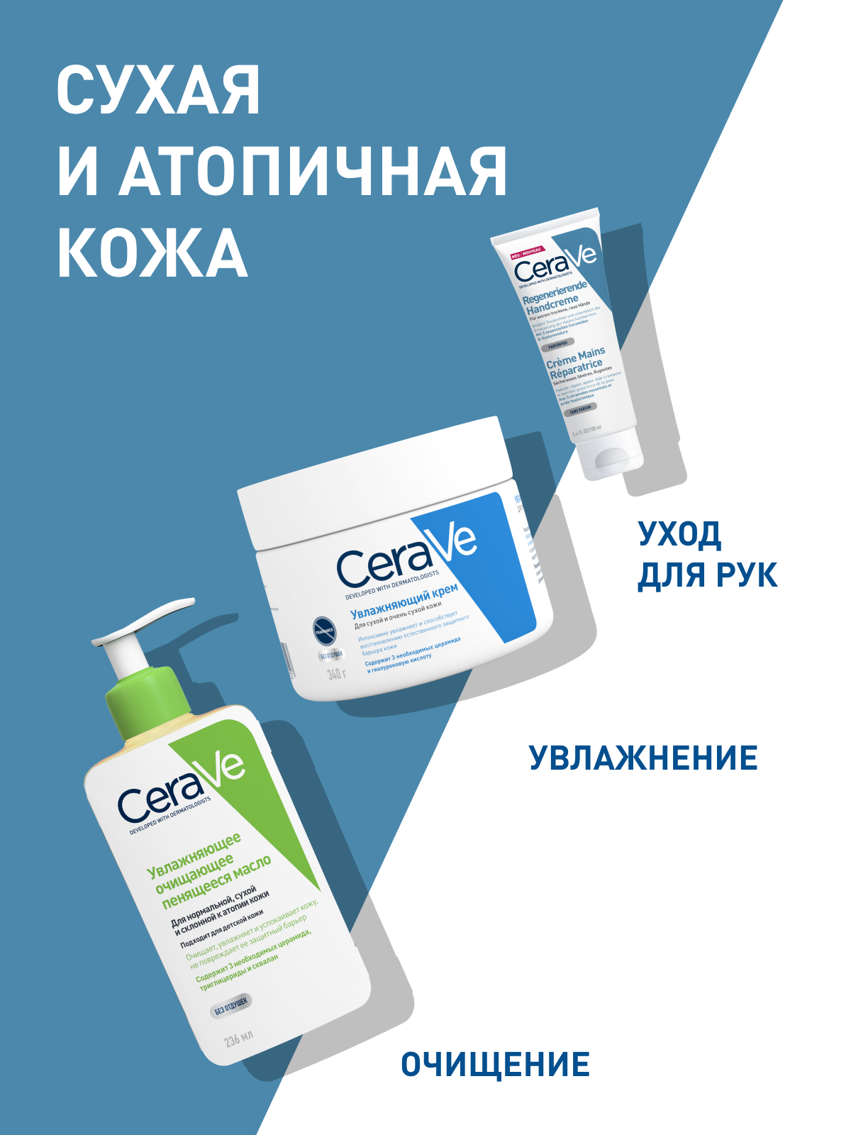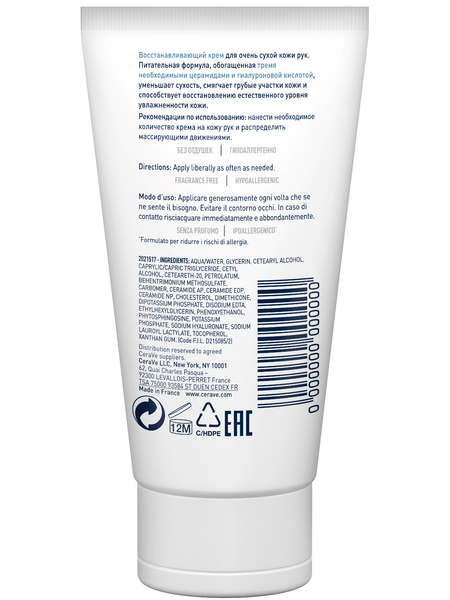 CeraVe® Крем для рук с нежирной текстурой глубоко увлажняет сухую потрескавшуюся кожу рук, способствуя восстановлению и укреплению защитного кожного барьера.