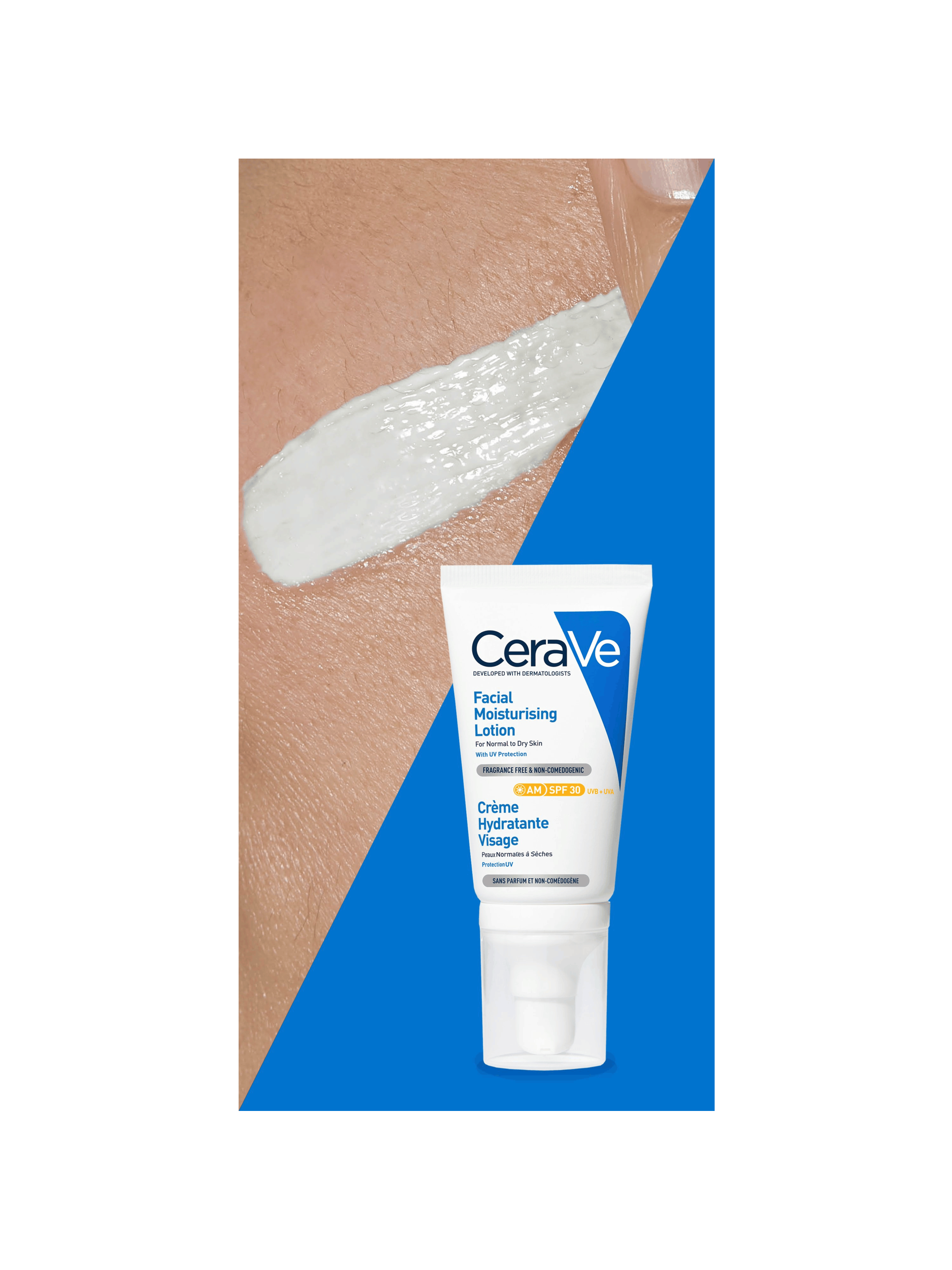 1.Увлажняющий лосьон для лица CeraVe AM SPF30 — легкий увлажняющий крем, подходит для всех типов кожи для ежедневного использования. Увлажняющий лосьон, обогащенный SPF30 и 3 незаменимыми керамидами, обеспечивает защиту широкого спектра от лучей UVA/UVB, сохраняет влагу до 24 часов и помогает восстановить барьерную функцию кожи. Также подходит для чувствительной кожи.