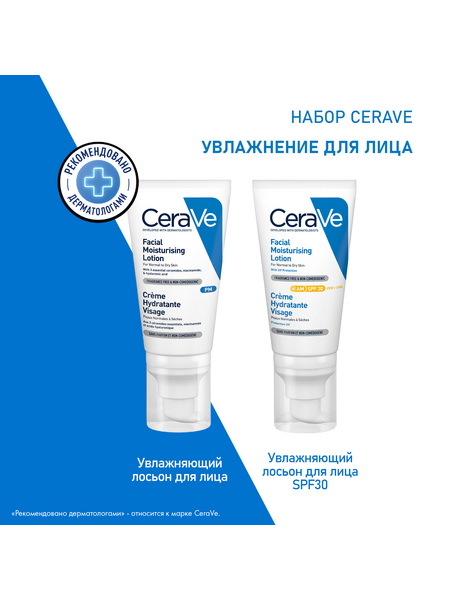 Cerave Набор увлажняющий крем для лица SPF30 52мл + Увлажняющий лосьон для лица для нормальной и сухой кожи 52мл.