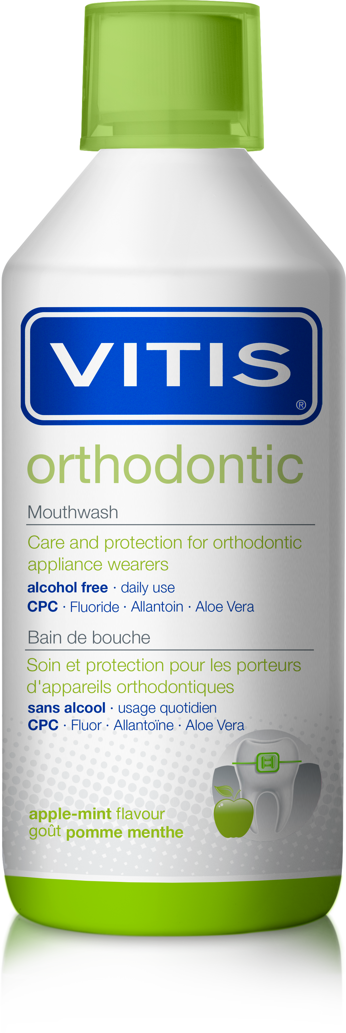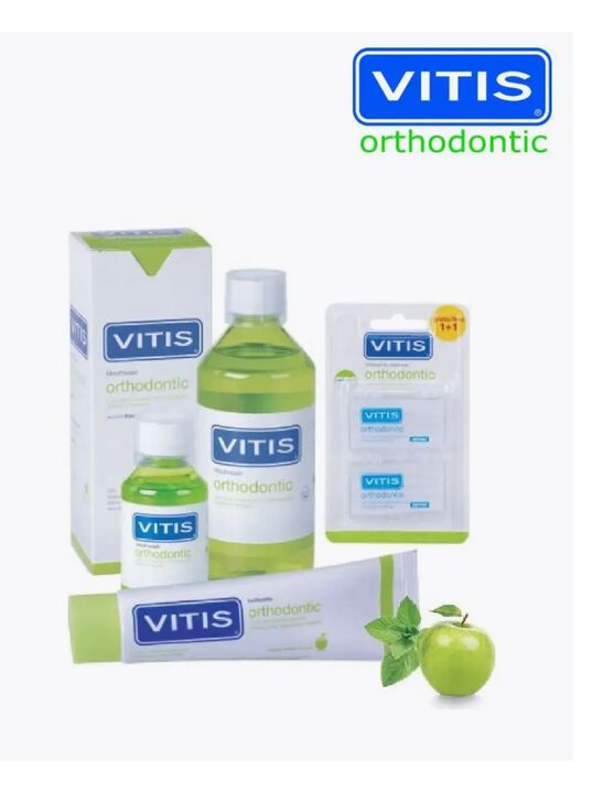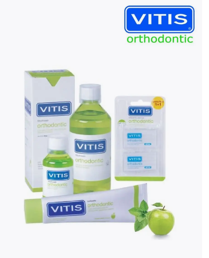 Ортодонтический ополаскиватель для рта VITIS® - это специально разработанное ежедневное ополаскиватель для гигиены полости рта у ортодонтов.
