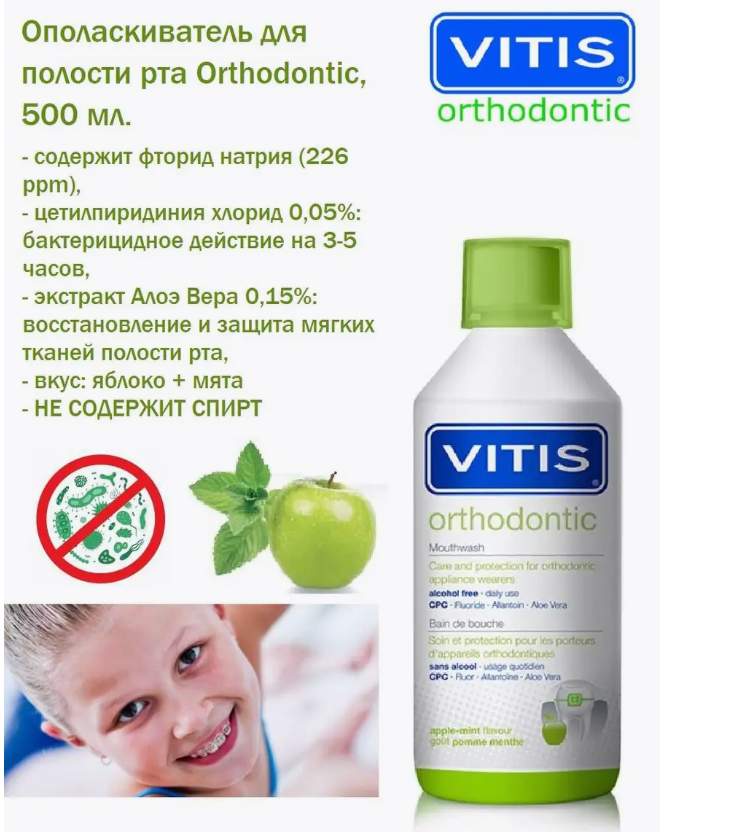 Описание: VITIS® Orthodontic ополаскиватель д/полости рта ортодонтический 500мл.