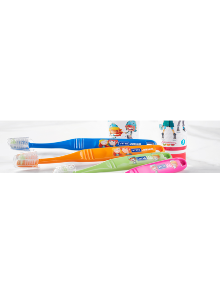 Зубная щетка VITIS® kids предназначена для профилактики кариеса путем ежедневной гигиены полости рта у детей старше 3 лет.