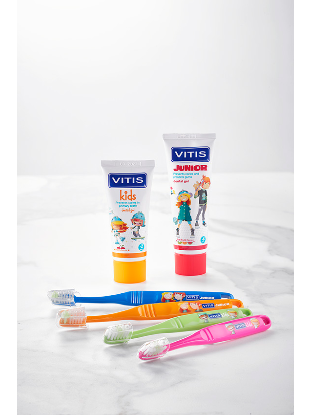 Детский стоматологический гель VITIS® специально разработан для поддержания здоровья молочных зубов у детей старше 2 лет.