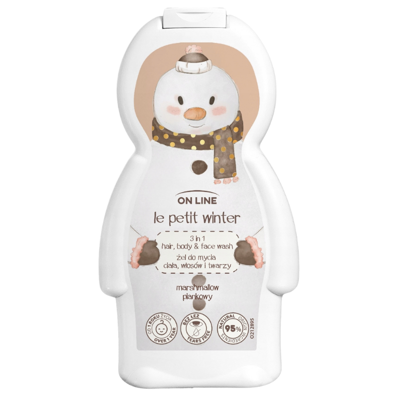 Гель для лица On Line Le Petit Winter 3-в-1 сочетает в себе эффективное очищение и исключительную мягкость. Его нежная пена эффективно удаляет загрязнения с лица, тела и волос, не повреждая естественный защитный барьер кожи. Благодаря натуральным ингредиентам, таким как смягчающие и увлажняющие компоненты , кожа малыша остается мягкой, эластичной и приятной на ощупь. Формула, разработанная специально для чувствительной детской кожи, не щиплет глаза и оставляет тонкий, свежий аромат, превращая каждое купание в настоящее удовольствие.