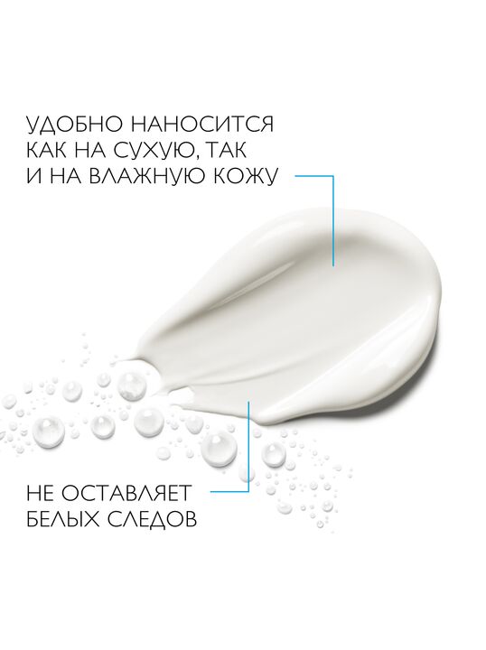 Легкая текстура удобно наносится как на сухую, так и на влажную кожу. Нежирная, нелипкая текстура. Не оставляет белых следов при нанесении на кожу.