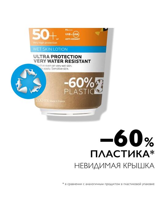 Технология нанесения на влажную кожу: не оставляющий следов мгновенно впитывающийся гель образует на коже гидрофобный слой, не пропускающий воду.