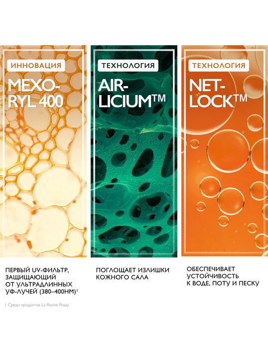 Более 10 лет исследований. Очень высокая степень защиты широкого спектра. Первый инновационный* фильтр Mexoryl 400 защищает от ультрадлинных UVA-лучей (380-400 нм), которые незаметны, повреждают кожу на глубоком клеточном уровне и составляют 30% УФ-лучей, воздействующих на кожу круглый год.