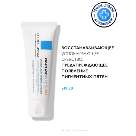 CICAPLAST БАЛЬЗАМ B5 SPF50 - это восстанавливающее успокаивающее средство с очень высоким фактором защиты от UVA/UVB-лучей. Благодаря инновационной формуле, средство не только эффективно успокаивает и восстанавливает кожу, но и предотвращает появление пигментных пятен на наиболее уязвимых участках кожи.