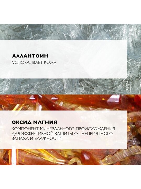 - Содержит Оксид Магния (MgO)- минеральный активный ингредиент 2 в 1, который обеспечивает защиту от неприятного запаха и влажности.