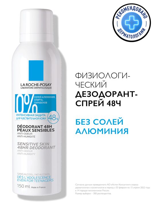 Физиологический дезодорант-спрей для чувствительной кожи обеспечивает защиту от неприятного запаха в течение 48 часов* и избыточного потоотделения. Физиологическая формула содержит компоненты с оптимальной переносимостью. Подходит для чувствительной кожи подмышек, а также для использования после бритья или эпиляции. Подходит для подростков с 14 лет. Формула обогащена оксидом магния (MgO) компонентом минерального происхождения для эффективной защиты от неприятного запаха и влажности. Не содержит солей алюминия, спирта, парабенов. Не оставляет следов на одежде.