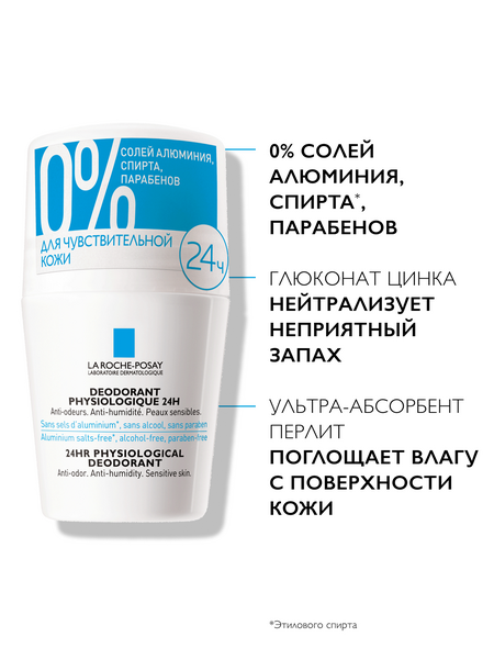 Инновация: Физиологический роликовый дезодорант для чувствительной кожи обеспечивает защиту от неприятного запаха в течение 24 часов* и избыточного потоотделения. Формула содержит компоненты с оптимальной переносимостью. Подходит для чувствительной кожи подмышек. Формула обогащена ультра-абсорбентом перлитом, глюконатом цинка для нейтрализации неприятного запаха и аллантоином для успокаивающего эффекта. Компактный ролик удобно носить с собой.