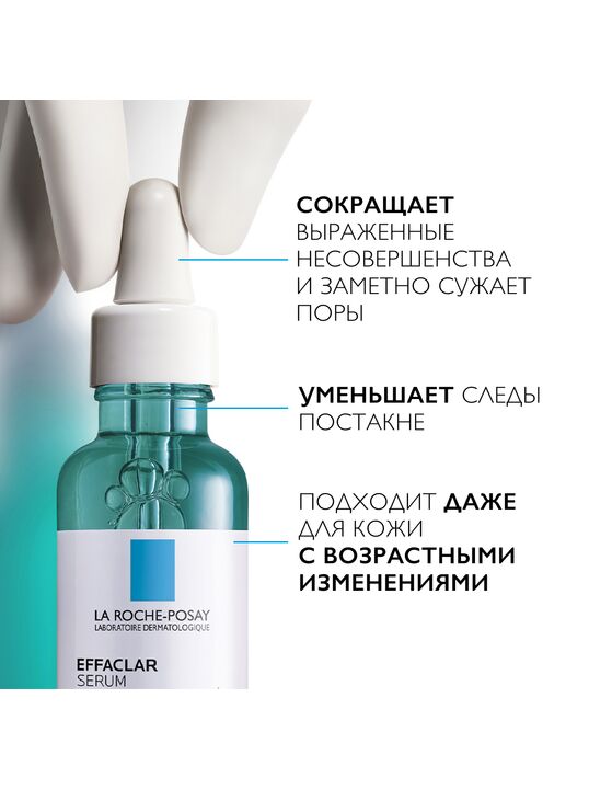 В постпубертатный период активность сальных желез снижается, и у кожи появляются другие потребности в основном уходе: например, связанные с возрастными изменениями кожи. Кожа может выглядеть более тусклой, цвет лица – неоднородным. Несмотря на изменение состояния кожи, до 40%3 взрослых сталкиваются с периодическими несовершенствами, закупоренными порами, черными точками, неровным микрорельефом кожи. На возникновение и обострение акне в любом возрасте может влиять образ жизни и другие факторы: стресс, загрязнение окружающей среды, неправильный уход за кожей, вредные привычки, недостаток сна. Учитывая потребности проблемной кожи в любом возрасте4, дерматологическая Лаборатория La Roche- Posay разработала Ультра Концентрированную сыворотку Effaclar. Активная формула средства, впервые1 содержащая комплекс из Трех Кислот борется с несовершенствами, дополняя ваш привычный ритуал ухода.