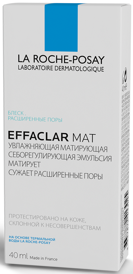ОПИСАНИЕ: Жирный блеск и расширенные поры возникают вследствие избыточной выработки кожного сала (себума). Эмульсия Effaclar Mat содержит компонент Sebulyse, который уменьшает выработку себума, оказывая матирующее действие и способствуя сужению пор. Себорегулирующее действие Sebulyse превосходит по эффективности Цинк, признанный активный компонент. Эфаклар Мат подходит для чувствительной кожи. Протестировано под контролем дерматологов. Сразу после нанесения кожа становится матовой и увлажненной. День за днем состояние кожи улучшается: нормализуется выработка кожного сала, поры сужаются, уменьшается жирный блеск. Не содержит маслянистых компонентов. Оказывает длительный матирующий эффект. Некомедогенно. Подходит для ежедневного ухода за кожей, склонной к появлению жирного блеска. Легкая шелковая текстура средства интенсивно увлажняет кожу, не закупоривая поры. Активный комплекс Себулиза и Перлита оказывает матирующее действие и способствует сужению пор.