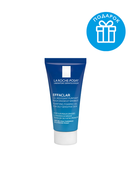 - LA ROCHE-POSAY EFFACLAR Гель очищающий пенящийся для чувствительной жирной кожи лица и тела, 50 мл - в подарок.