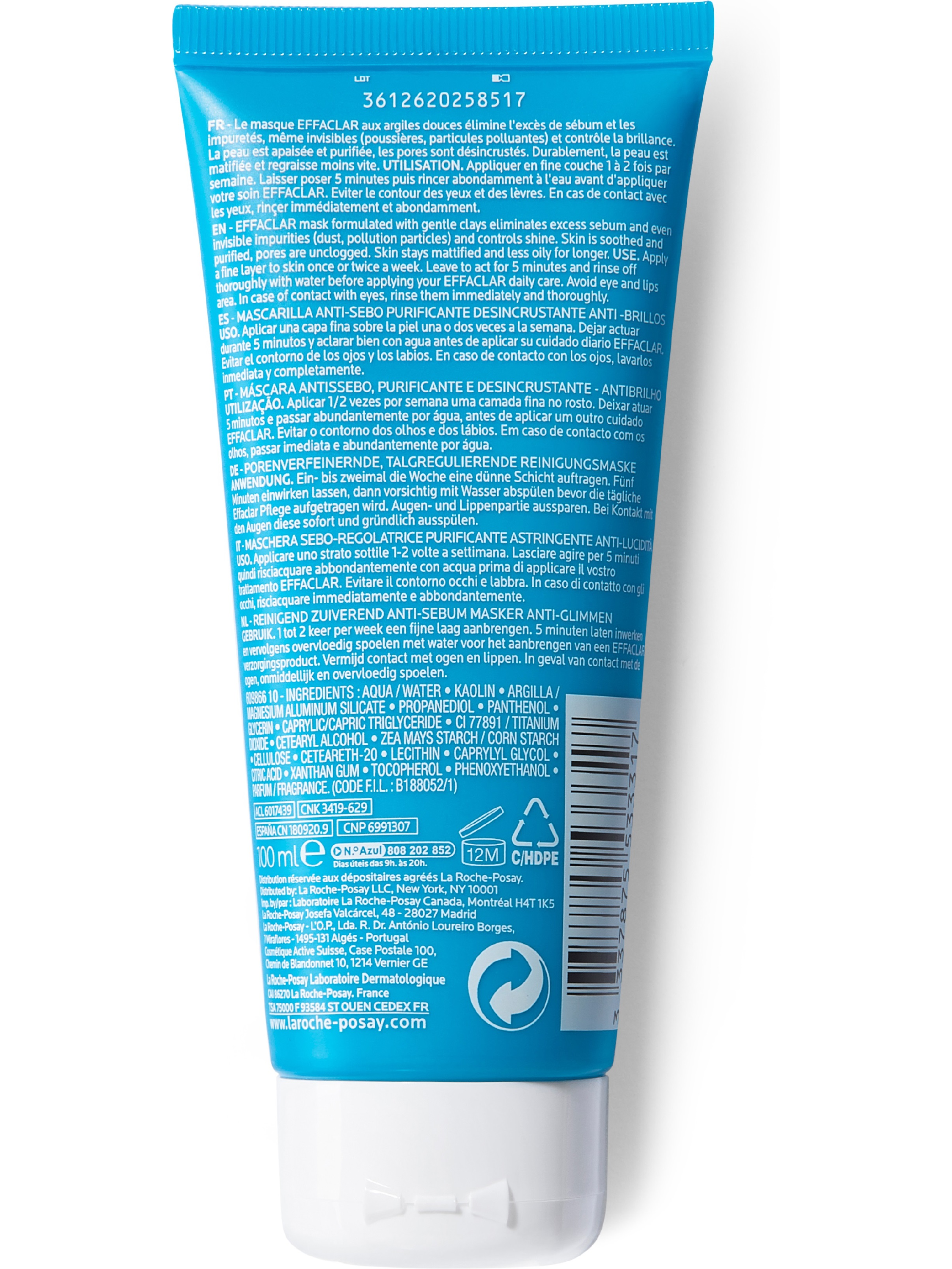 МАСКА ДЛЯ ЛИЦА EFFACLAR ГЛУБОКО ОЧИЩАЕТ ПОРЫ, удаляя даже невидимые глазу загрязнения, и заметно матирует кожу, не вызывая ощущения сухости. Маска Effaclar содержит два вида минеральной глины, которые обеспечивают интенсивный очищающий эффект. Термальная вода La Roche-Posay успокаивает и увлажняет кожу.