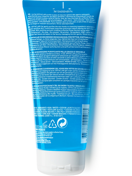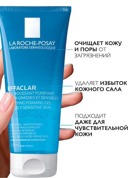 ОЧИЩАЮЩИЙ ПЕНЯЩИЙСЯ ГЕЛЬ ДЛЯ ЖИРНОЙ ЧУВСТВИТЕЛЬНОЙ КОЖИ ЛИЦА И ТЕЛА БЕРЕЖНО ОЧИЩАЕТ КОЖУ И ПОРЫ благодаря комплексу компонентов, мягко воздействующих на жирную чувствительную кожу. Эффективно удаляет загрязнения и кожное сало, оставляя кожу чистой и свежей. Благодаря специальной технологии поддерживает рН кожи. Формула геля содержит термальную воду La Roche-Posay. Используйте его регулярно, чтобы повысить эффективность ухода за проблемной кожей.
