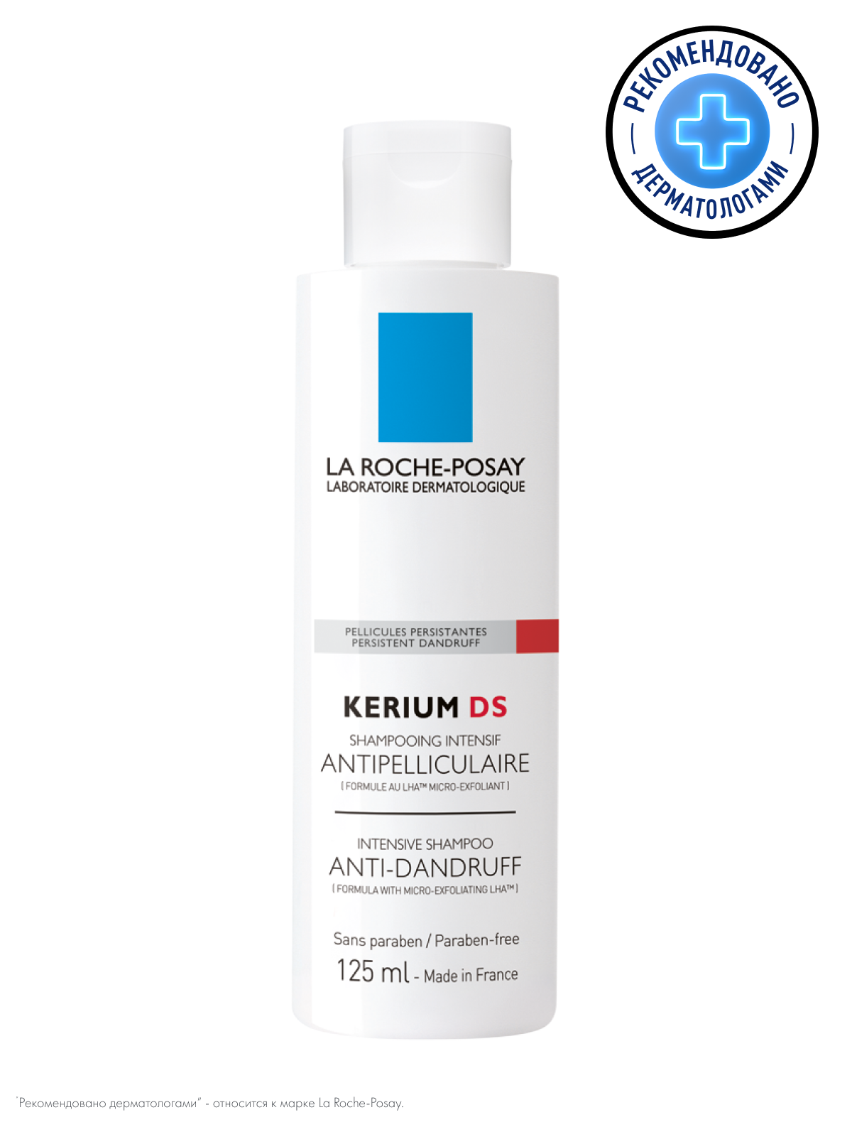 Интенсивный шампунь против перхоти с микроотшелушивающим эффектом POSAY KERIUM DS устраняет перхоть, тщательно очищая и успокаивая кожу волосистой части головы, устраняя зуд. Средство обладает уникальным синергетическим эффектом благодаря запатентованному компоненту LHA (Липо-гидрокси-кислота), который действует совместно с салициловой кислотой, активным кератолитиком, устраняя стойкую перхоть и шелушение. Технология целенаправленного действия на корни волос позволяет равномерно распределить активные ингредиенты по коже головы и в сально-волосяных фоликулах. Показания к применению: стойкая, рецидивирующая перхоть, зуд кожи головы. Уже после первого применения заметно уменьшается шелушение и зуд, исчезает ощущение дискомфорта. Через 3 недели после начала использования перхоть полностью исчезает. Предупреждает повторное появление перхоти. Результат сохраняется в течение 6 недель после прекращения использования. Бренд входит в дивизион активной косметики международной Группы LʼOréal: La Roche-Posay (Ля Рош Позе), CeraVe (Цераве) и др.