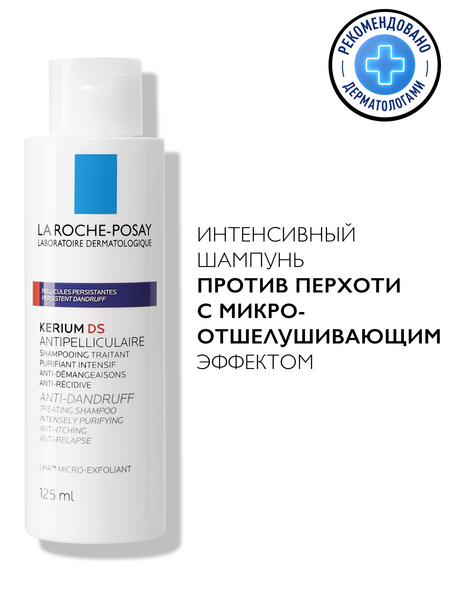 LA ROCHE-POSAY KERIUM DS Интенсивный шампунь против перхоти с микроотшелушивающим эффектом, 125 мл
