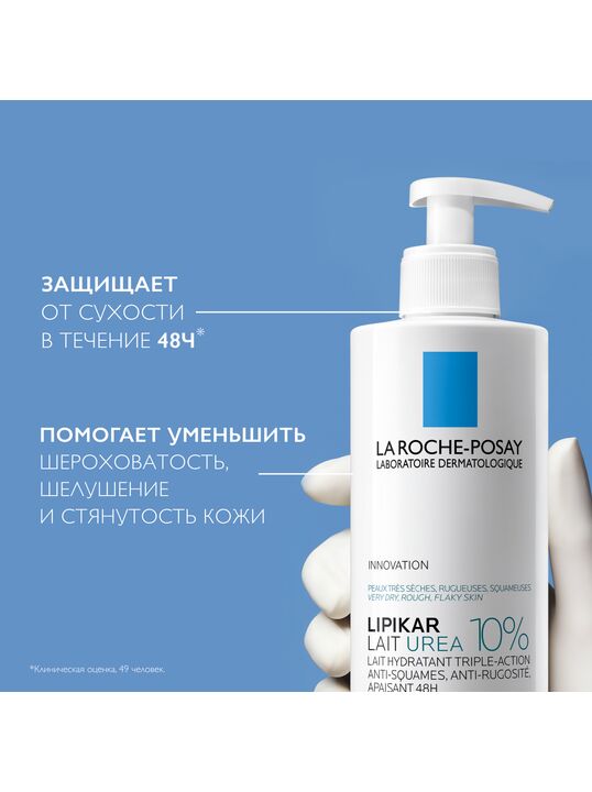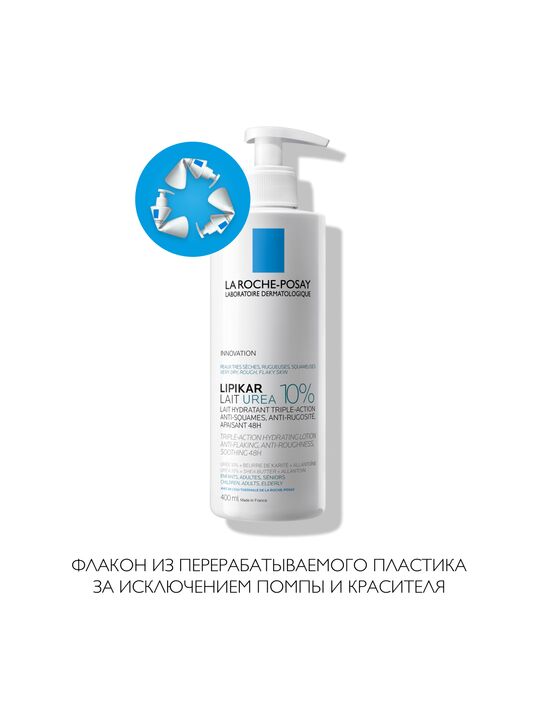 LA ROCHE-POSAY LIPIKAR LAIT UREA 10% Увлажняющее молочко для тела тройного действия, 400 мл