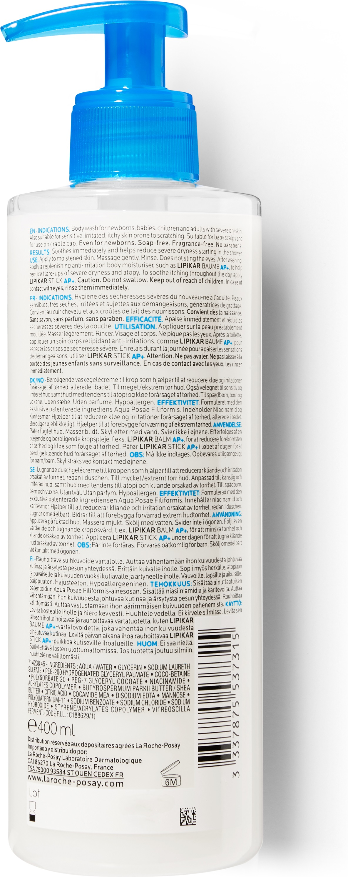 - Для достижения наилучших результатов, после мытья нанесите на кожу липидовосполняющий бальзам LIPIKAR АP+, который интенсивно питает, длительно увлажняет, восстанавливая липидный барьер кожи.