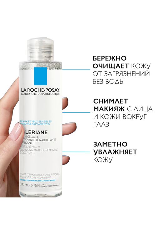 Новая архитектура формулы мицеллярной воды, разработанная Дерматологической лабораторией LA ROCHE-POSAY, позволила соединить силу мицелл и глицерина для достижения ультраэффективности и оптимальной переносимости. Мицеллярная вода равномерно распределяется по поверхности кожи, не вызывает трения и повреждения ее защитного барьера. Благодаря новой формуле происходит прочный захват и удержание всех частиц макияжа и микрозагрязнений. Содержит термальную воду LA ROCHE-POSAY. Средство предназначено для чувствительной кожи лица и глаз. Моментально удаляет макияж, очищает кожу и успокаивает ее. Не содержит парабенов, мыла, красителей, маслянистых компонентов и спирта. Физиологический уровень pH 5.5.