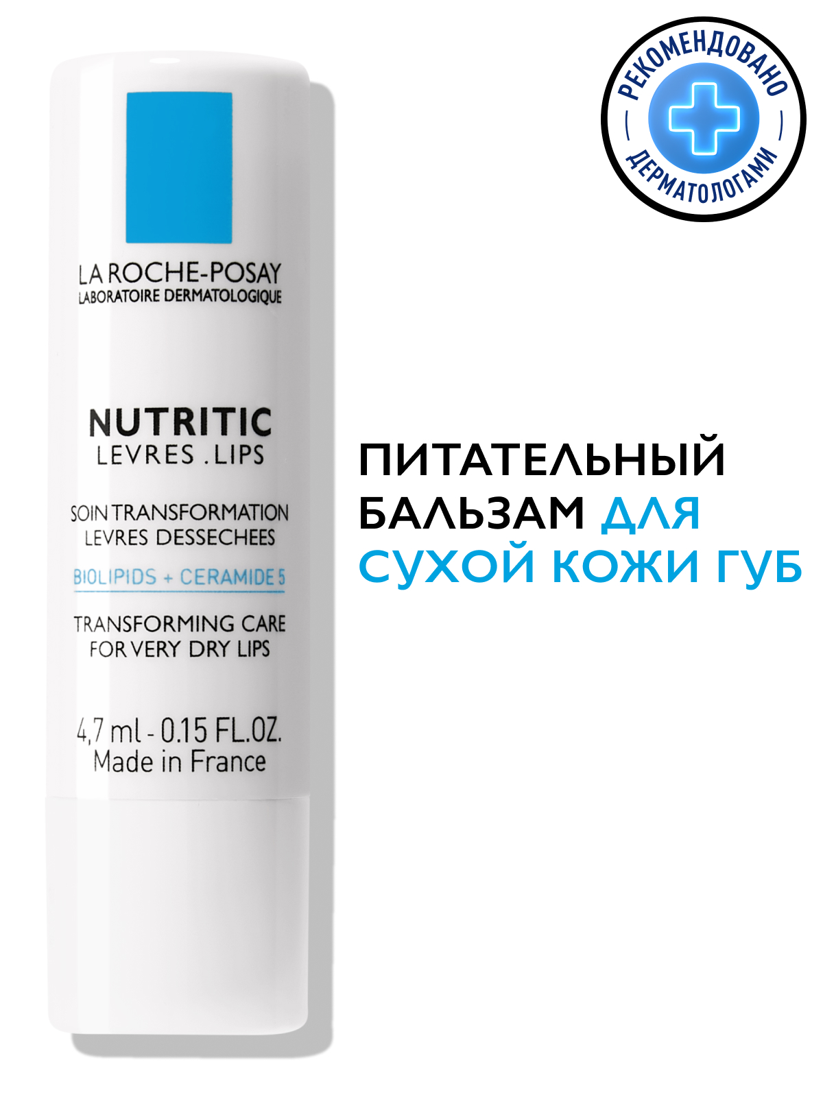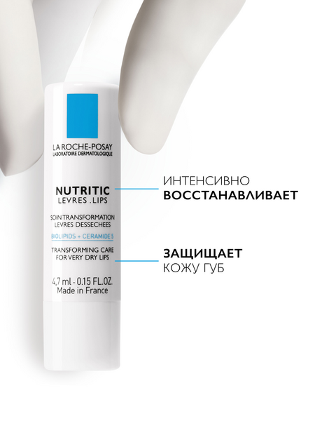 LA ROCHE-POSAY NUTRITIC LEVRES Питательный бальзам для глубокого восстановления кожи губ, 4,7 мл