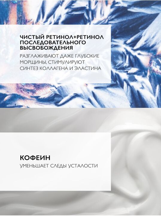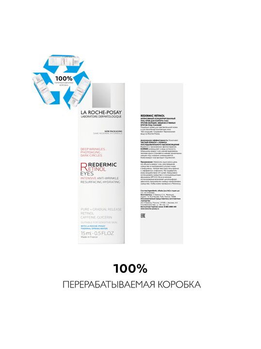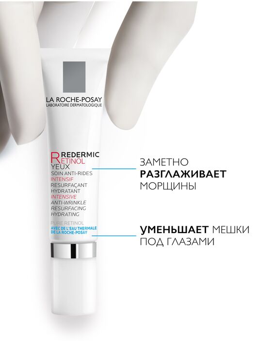 ИНТЕНСИВЫЙ КОНЦЕНТРИРОВАННЫЙ ГЕЛЬ-КРЕМ REDERMIC RETINOL YEUX для контура глаз содержит обновляющий комплекс [ЧИСТЫЙ РЕТИНОЛ + РЕТИНОЛ ПОСЛЕДОВАТЕЛЬНОГО ВЫСВОБОЖДЕНИЯ] для коррекции морщин в сочетании с КОФЕИНОМ для уменьшения следов усталости.