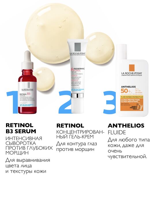 Легкая текстура флюида с эффектом лифтинга. Содержит Термальную воду La Roche-Posay.