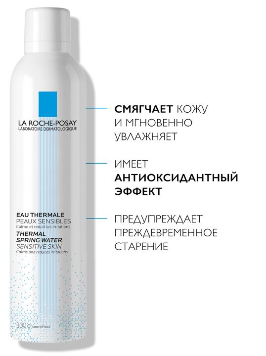 ТЕРМАЛЬНАЯ ВОДА LA ROCHE-POSAY Дерматологический активный компонент. Смягчает, увлажняет кожу. Нейтрализует действие свободных радикалов.
