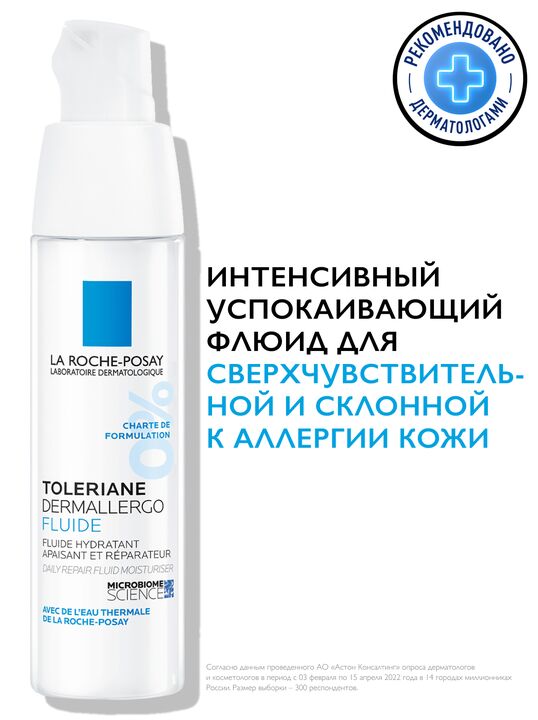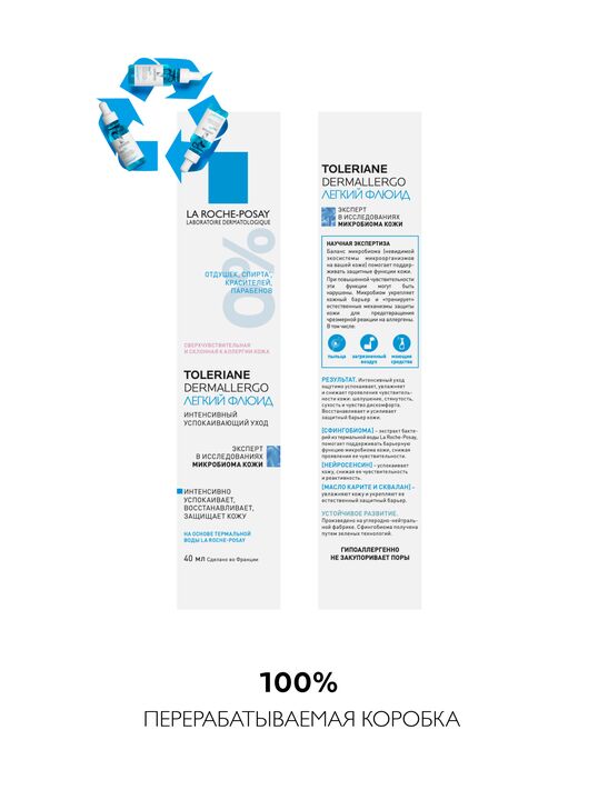 La Roche-Posay Toleriane Dermallergo легкий флюид 40мл. Интенсивный успокаивающий уход для сверхчувствительной и склонной к аллергии кожи