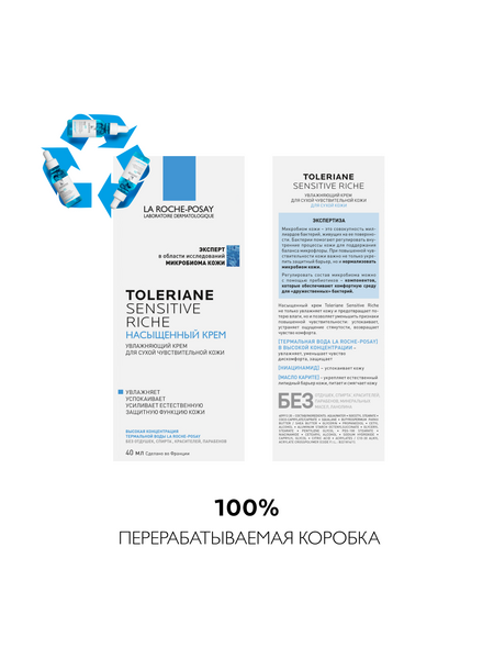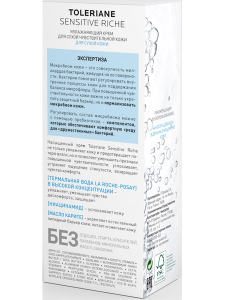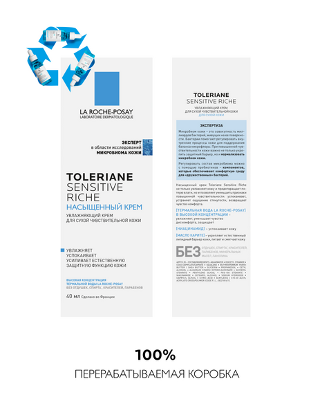 ИННОВАЦИЯ: пребиотическая формула регулирует микробиом кожи*. Насыщенный крем на основе высокой концентрации Термальной воды La Roche-Posay и масла Карите увлажняет, успокаивает, усиливает естественную защитную функцию кожи. Не закупоривает поры. БЕЗ отдушек, спирта, красителей, парабенов, минеральных масел, ланолина.