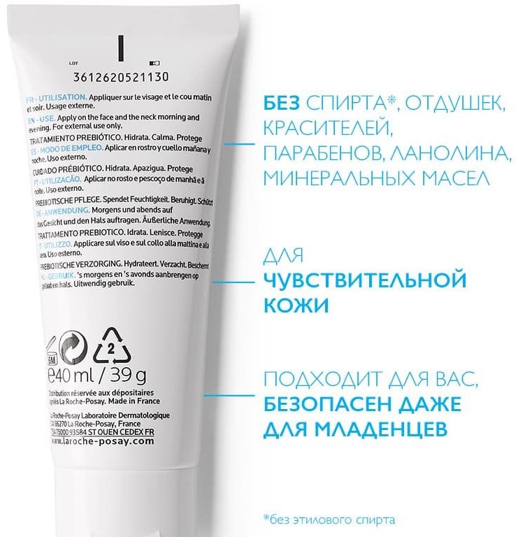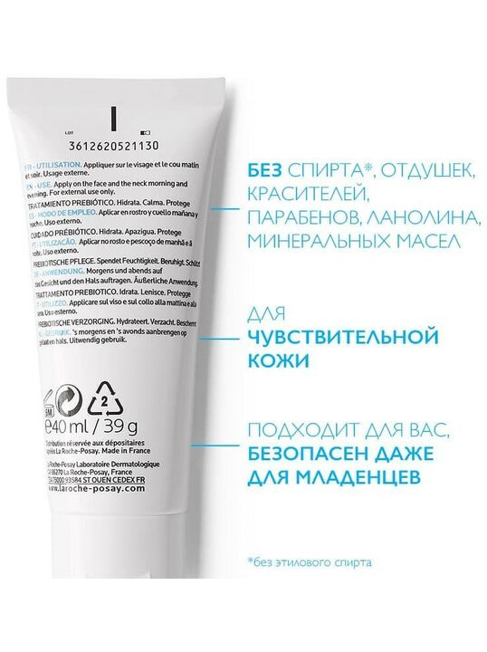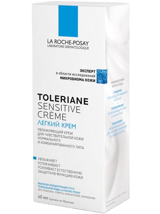 БЕЗ ОТДУШЕК, СПИРТА, КРАСИТЕЛЕЙ, ПАРАБЕНОВ, МИНЕРАЛЬНЫХ МАСЕЛ, ЛАНОЛИНА. Высокие стандарты безопасности, свойственные марке La Roche-Posay: легкий крем Toleriane Sensitive безопасен даже для младенцев. Бренд входит в дивизион активной косметики международной Группы LʼOréal: La Roche-Posay (Ля Рош Позе), CeraVe (Цераве) и другие бренды.