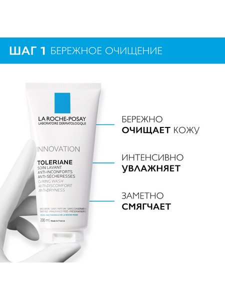 2. LA ROCHE-POSAY TOLERIANE Caring Wash Очищающий крем-гель для умывания, 200 мл