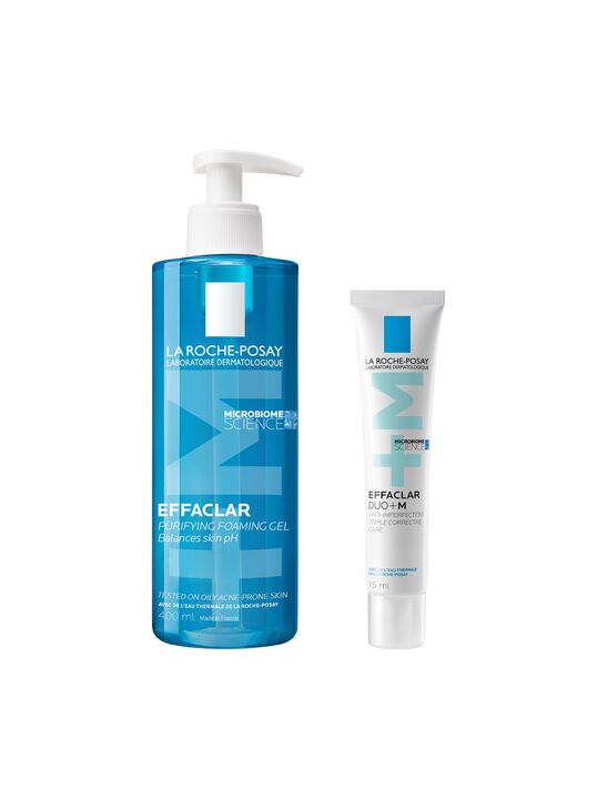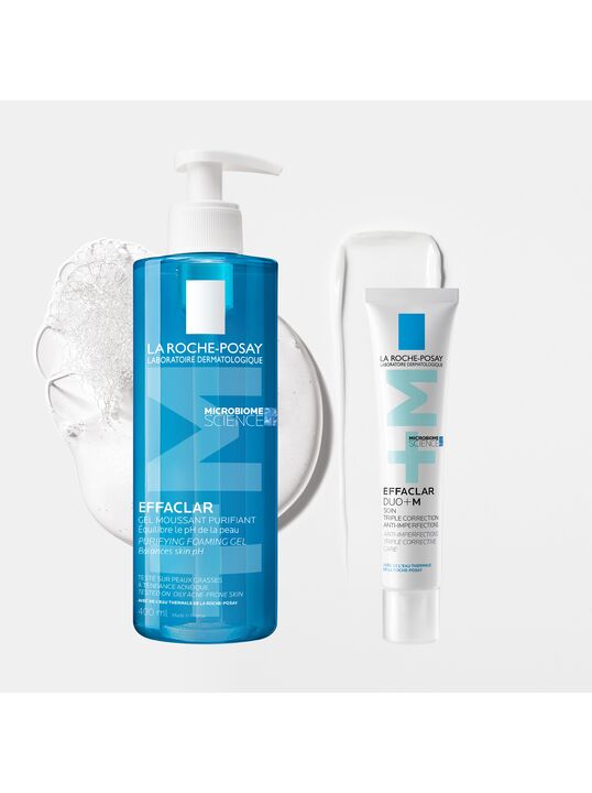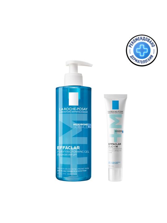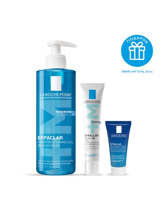 Инновация: Новый активный ингредиент Филобиома Aктив целенаправленно воздействует именно на филотип IA1, способствующий появлению акне. Сокращает несовершенства, устраняет избыток кожного сала и успокаивает кожу. Воздействует на 4 параметра несовершенств (диаметр, рельеф, качество кожи и покраснения, вызванные несовершенствами). Способ применения: Вспеньте в ладонях с помощью небольшого количества воды и нанесите на кожу нежными массирующими движениями, затем тщательно смойте. В случае попадания в глаза немедленно промойте их водой. - LA ROCHE-POSAY EFFACLAR DUO+ M Тройной корректирующий крем-гель против несовершенств, постакне, повторного проявления несовершенств для проблемной кожи, 40 мл. Реновация: LA ROCHE-POSAY EFFACLAR DUO+ M Тройной корректирующий крем-гель сокращает выраженные несовершенства, черные точки и постакне. Препятствует повторному образованию несовершенств и предупреждает появление остаточных следов от несовершенств в виде красных и темных пятен. Устраняет жирный блеск и увлажняет кожу. Крем-гель можно использовать как базу под макияж. Видимый результат уже через 6 часов*. Подходит даже с 10 лет.